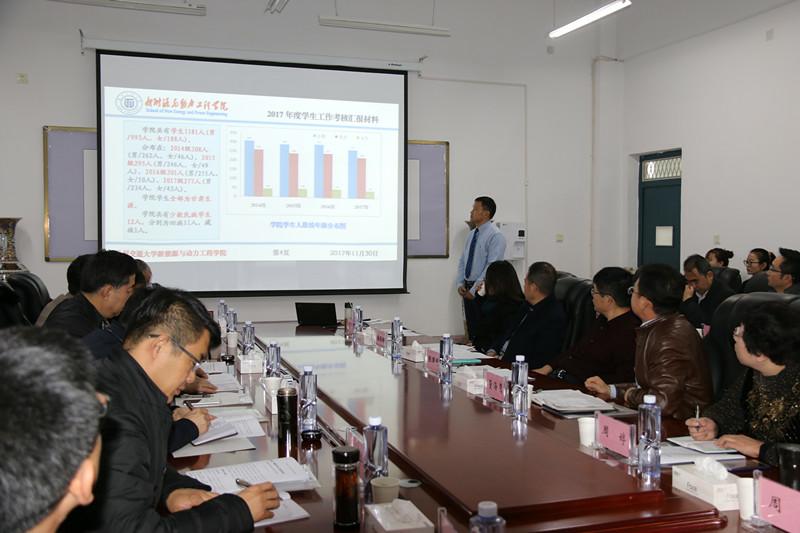 會前,新能源學(xué)院院長董海鷹考核組總體匯報了學(xué)院的師資情況、工作思路、工作措施、取得的成績及面臨的困難。