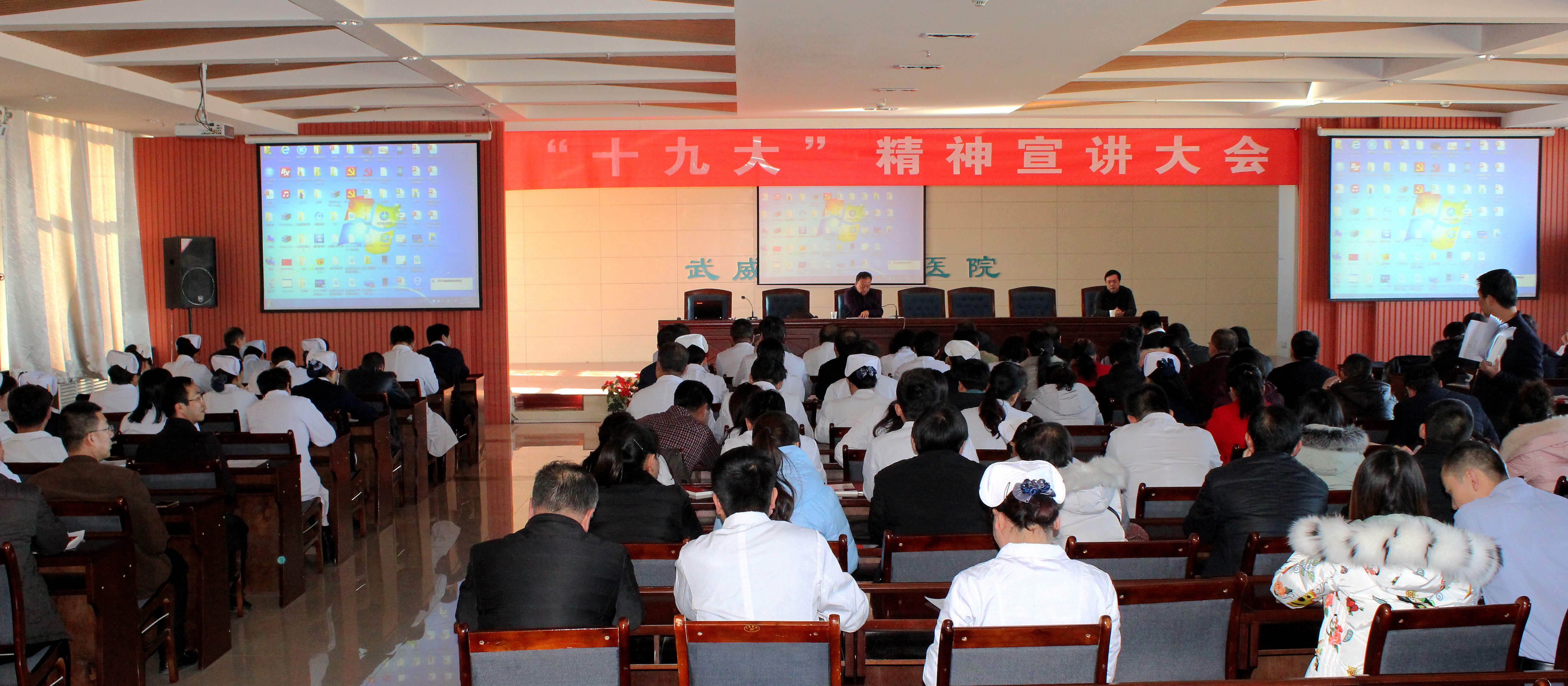12月27日,直屬附屬醫(yī)院在內(nèi)科七樓舉行黨的十九大精神宣講報(bào)告大會(huì)。會(huì)議邀請(qǐng)武威市委講師團(tuán)副團(tuán)長(zhǎng)張生龍作宣講報(bào)告。直屬附屬醫(yī)院黨委書記陳鋼主持報(bào)告會(huì)。醫(yī)院全體共產(chǎn)黨員、中層以上干部160余人聆聽了宣講報(bào)告。