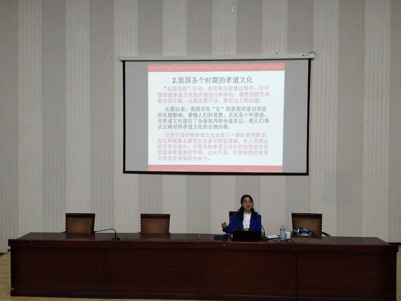 4月23日晚,為弘揚和傳承中華優(yōu)秀文化,培育和踐行社會主義核心價值觀,在全院師生中營造良好的讀書氛圍,提高師生人文素養(yǎng),在“世界讀書日”來臨之際,由學院舉辦的讀書月活動講座在正德廳舉行。護理系趙穎教授應邀作了《傳承中華美德,弘揚孝道文化》的專題講座,師生代表近300人參加。