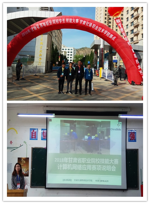 4月21日—22日,2018年甘肅省高等職業(yè)院校技能大賽“計算機網(wǎng)絡(luò)應(yīng)用”賽項在甘肅交通職業(yè)技術(shù)學(xué)院賽點順利舉行?!坝嬎銠C網(wǎng)絡(luò)應(yīng)用”賽項的參賽院校為12所,共有參賽隊21個。我系參賽隊由2017級計算機網(wǎng)絡(luò)技術(shù)大專班學(xué)生畢浩、張向東、趙明明三位同學(xué)組成,指導(dǎo)老師史子新、唐宗舜。