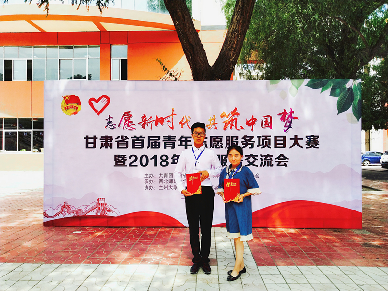 2018年6月20日—22日,甘肅省首屆青年志愿服務(wù)項目大賽暨2018年志愿服務(wù)交流會在蘭州西北師范大學(xué)學(xué)生發(fā)展中心舉行,學(xué)院團委推選的兩個項目參加了此次大賽。共青團甘肅省委書記趙立香、西北師范大學(xué)校長劉仲奎出席本次大賽閉幕式。