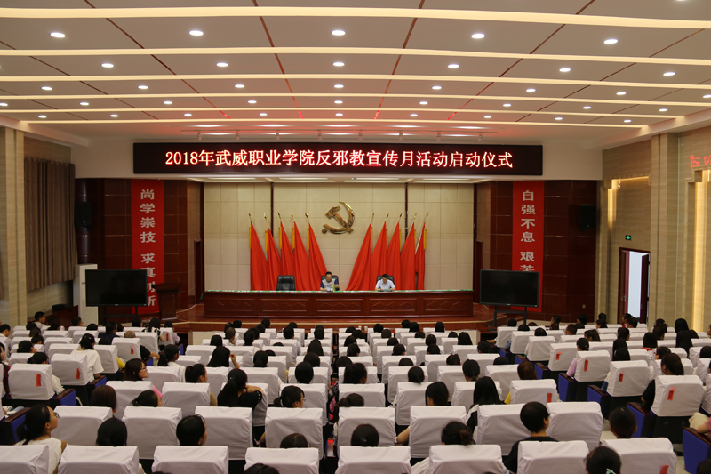 根據(jù)省教育廳印發(fā)的“2018年全省教育系統(tǒng)反邪教宣傳月宣傳周宣傳日活動(dòng)方案”要求,學(xué)院集中開(kāi)展以“抵制邪教、和諧校園”為主題的反邪教宣傳教育活動(dòng)。6月14日,學(xué)院舉行了“武威職業(yè)學(xué)院2018年反邪教宣傳月活動(dòng)啟動(dòng)儀式”及師生簽名活動(dòng),師生代表共220余人參加了啟動(dòng)儀式,啟動(dòng)儀式由宣傳統(tǒng)戰(zhàn)部部長(zhǎng)王繼林主持。