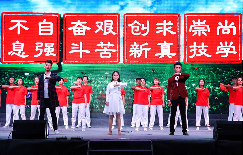 晚會中,在音樂學科專業(yè)頗有建樹的幾位老師表演了高水準的器樂合奏《贊歌》,讓師生陶醉于器樂演奏的優(yōu)美旋律和意境,贏得了全場經久不息的掌聲。大學生藝術團舞蹈隊和聲樂隊表演的歌伴舞《紅旗飄飄》《美麗中國》激情四射、唯美動聽,詮釋了青年學子對祖國的熱愛和深情祝福。人文藝術教育系選送的現(xiàn)代舞《追逐夢想》用歡快的舞步展現(xiàn)了青年最富有朝氣、最富有夢想的精神風貌,《茉莉花開》更是讓師生陶醉于傳統(tǒng)舞蹈的優(yōu)美意境。雙人舞表演《鄉(xiāng)·遠方》舞蹈動作豪放、粗狂但不失委婉、細致,為我們呈現(xiàn)出“天之驕子”的氣概。校園好聲音教師組冠軍和學生組冠軍合唱的歌曲《你是我的眼》傳唱了職院好聲音,定格了大家的青春記憶。校園二把手樂隊帶來的歌曲《平凡之路》引起全場轟動,將晚會推向了高潮,同學們紛紛點亮了自己的手機,現(xiàn)場匯成了一片充滿歌聲的“星?!?。