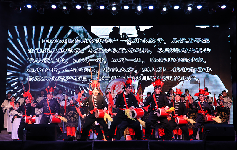 近年來,學院師生創(chuàng)作、改編了許多反映地方特色和校園生活主題的節(jié)目。其中晚會上由我院教師自編原創(chuàng)的大型吟誦舞臺劇《金戈鐵馬入夢涼州》邀請了國家級非物質文化遺產涼州攻鼓子助力表演,結合戲曲、舞蹈、器樂等形式,全方位展示了涼州文化深厚的底蘊和鮮明的地域特色,涼州攻鼓子表演更是蕩氣回腸,讓現(xiàn)場師生充分領略了傳統(tǒng)文化的博大精深和獨特魅力。大學生藝術團主持隊自編自演的詩歌朗誦《青春報告》,結合當代大學生青春夢想、歷史使命的創(chuàng)作和聲情并茂的演繹,體現(xiàn)了新青年對于理想與擔當?shù)娜陆庾x。大學生藝術團曲藝隊自導改編的相聲《新生入學指南》,以詼諧幽默的形式講解了大一新生入學后的趣味生活,贏得了新同學們的共鳴和陣陣掌聲。