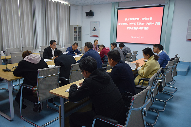 10月19日下午,新能源學(xué)院辦公室黨支部在黨員活動室召開學(xué)習(xí)貫徹習(xí)近平總書記給中央美術(shù)學(xué)院老教授重要回信精神專題會議。會議由黨支部書記任陶主持,支部全體黨員參加了此次會議。