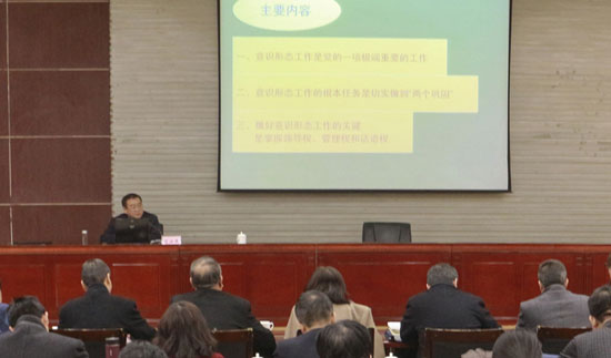 肖安鹿在題為《習近平總書記關于意識形態(tài)工作的思考》的講座中,從意識形態(tài)工作是黨的一項極端重要的工作,意識形態(tài)工作的根本任務是貫徹落實“兩個鞏固”,做好意識形態(tài)工作的主要工作是掌握領導權、管理權和話語權等三個方面,為學員們作了深入淺出地解讀。