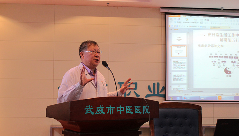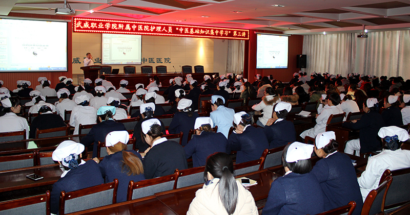 為了提高全院護理人員的中醫(yī)基礎(chǔ)知識水平, 12月12日下午,學(xué)院附屬中醫(yī)院護理部在內(nèi)科七樓會議室舉辦護理人員中醫(yī)基礎(chǔ)知識學(xué)習(xí)會。會議邀請康復(fù)中心主任,中醫(yī)針灸主任醫(yī)師張國忠為全院150多名護理工作者作題為《在日常生活中如何應(yīng)用理解陰陽五行》的中醫(yī)知識講座。