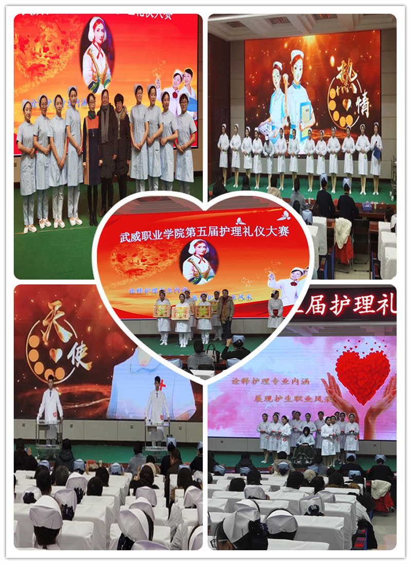 為弘揚(yáng)南丁格爾精神,強(qiáng)化護(hù)生禮儀修養(yǎng),推進(jìn)護(hù)理專(zhuān)業(yè)深層次內(nèi)涵式發(fā)展,助推我市文明城市建設(shè),12月21日,在大學(xué)生活動(dòng)中心菁英廳舉辦了“武威職業(yè)學(xué)院第五屆護(hù)理禮儀大賽”。學(xué)院黨委書(shū)記、院長(zhǎng)趙明、學(xué)院副院長(zhǎng)田迎春、院工會(huì)主席金玉龍、教務(wù)處處長(zhǎng)仲生仁、學(xué)生工作處處長(zhǎng)王守云、招生就業(yè)處處長(zhǎng)蔡柱山、科研處處長(zhǎng)張玉琴、圖書(shū)館館長(zhǎng)黃雪梅、電子信息黨總支書(shū)記袁青年應(yīng)邀出席本次活動(dòng),護(hù)理系300多名師生觀看了本次比賽。