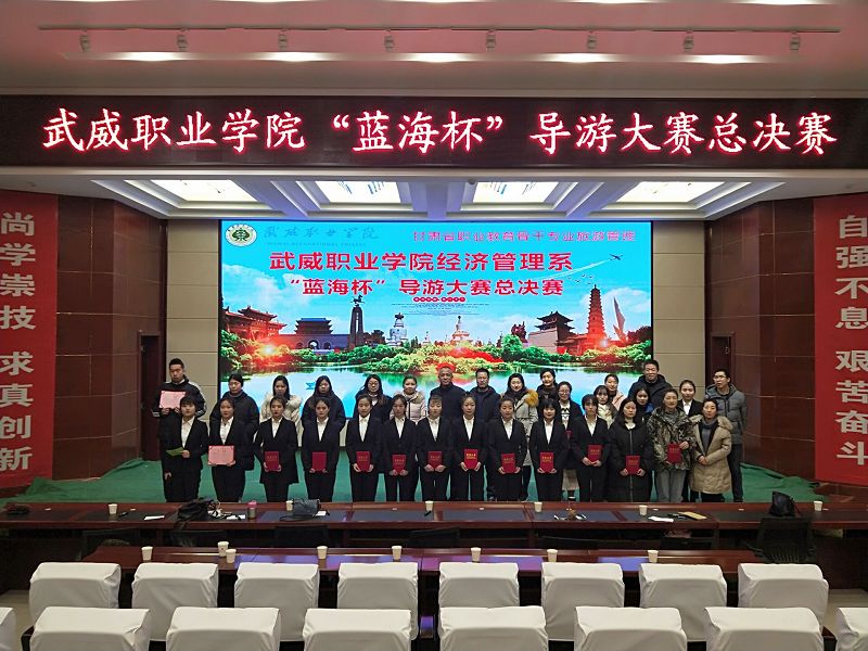 2018年12月28日,武威職業(yè)學(xué)院經(jīng)濟(jì)管理系“藍(lán)海杯“導(dǎo)游大賽決賽在大學(xué)生活動(dòng)中心“菁英廳”圓滿(mǎn)落幕。此次活動(dòng)是甘肅省職業(yè)教育骨干專(zhuān)業(yè)旅游管理專(zhuān)業(yè)建設(shè)活動(dòng)之一。