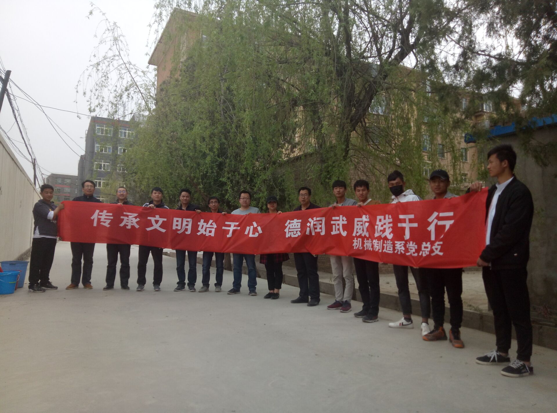 4月19日下午,機(jī)械制造系黨總支組織教師、學(xué)生兩個(gè)黨支部所有黨員及入黨積極分子共20余人在學(xué)院舊家屬樓院內(nèi)開(kāi)展了環(huán)境治理活動(dòng)。