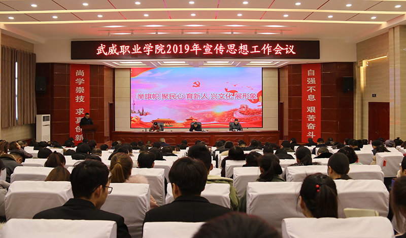 趙明要求,進一步加強和改進宣傳思想工作,要加強黨的領導,全面貫徹落實全國、全省、全市宣傳思想工作會議精神。一是要圍繞“舉旗幟”,強化理論武裝。堅持把學習貫徹習近平新時代中國特色社會主義思想作為首要政治任務,堅持不懈用習近平新時代中國特色社會主義思想武裝頭腦、教育師生,把科學理論轉(zhuǎn)化為指導實踐、推進工作的強大力量。二是要圍繞“聚民心”,鞏固和壯大主流思想輿論。堅持不懈宣傳習近平新時代中國特色社會主義思想和黨的十九大精神,宣傳改革開放40周年和建國70周年來取得的輝煌成就,把全院師生的士氣鼓舞起來、精神振奮起來,不斷為辦好人民滿意的教育凝聚起強大的精神力量;三是要圍繞“育新人”,落實“立德樹人”根本任務。著力加強師生理想信念教育和思想道德建設,培養(yǎng)德智體美全面發(fā)展的社會主義建設者和接班人,努力辦好人民滿意的教育。四是要圍繞“興文化”,建設和繁榮校園文化。堅持以文化人、以文育人,提升校園文化活動水平,加強精神文明建設,堅決落實好武威市創(chuàng)建全國文明城市、學院建設文明校園各項工作任務,增強學院發(fā)展軟實力,擴大文化活動的參與面、增強吸引力,積極倡導時代新風,讓師生在風氣涵養(yǎng)和熏陶中實現(xiàn)自我教育、自我提高。五是要圍繞“展形象”,講好學院故事。積極開展國際、國內(nèi)學術(shù)交流合作,邀請高層次專家來校交流講學,著力營造濃厚的學術(shù)氛圍,宣傳學院建設發(fā)展取得的成就,進一步提升學院知名度。
