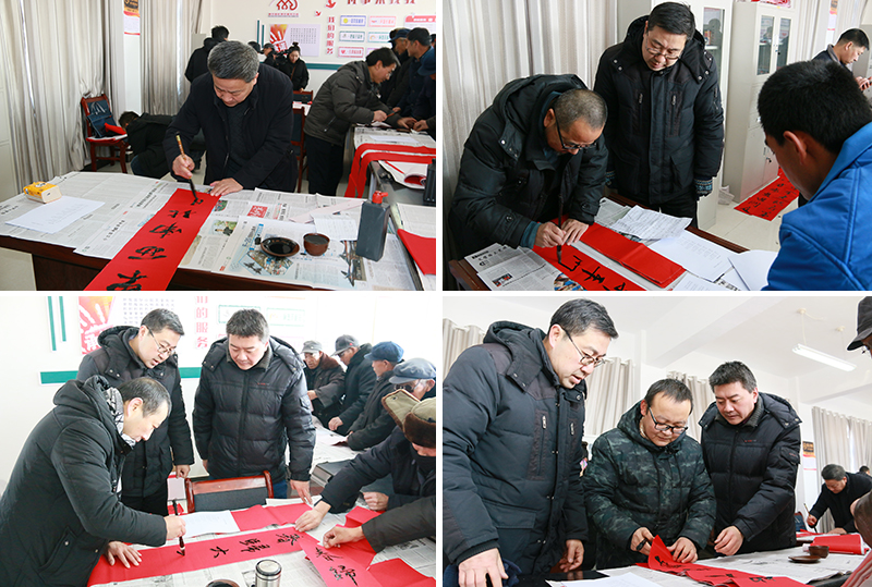 1月9日,學(xué)院扶貧幫扶點(diǎn)古浪縣黃花灘8號(hào)移民點(diǎn)熱鬧非凡,人文藝術(shù)教育系黨總支開(kāi)展了一場(chǎng)喜慶活潑的“喜迎佳節(jié)、送春聯(lián)文化進(jìn)萬(wàn)家”主題黨日活動(dòng),村委會(huì)內(nèi)外圍滿了欣賞書(shū)畫(huà)的干部群眾。