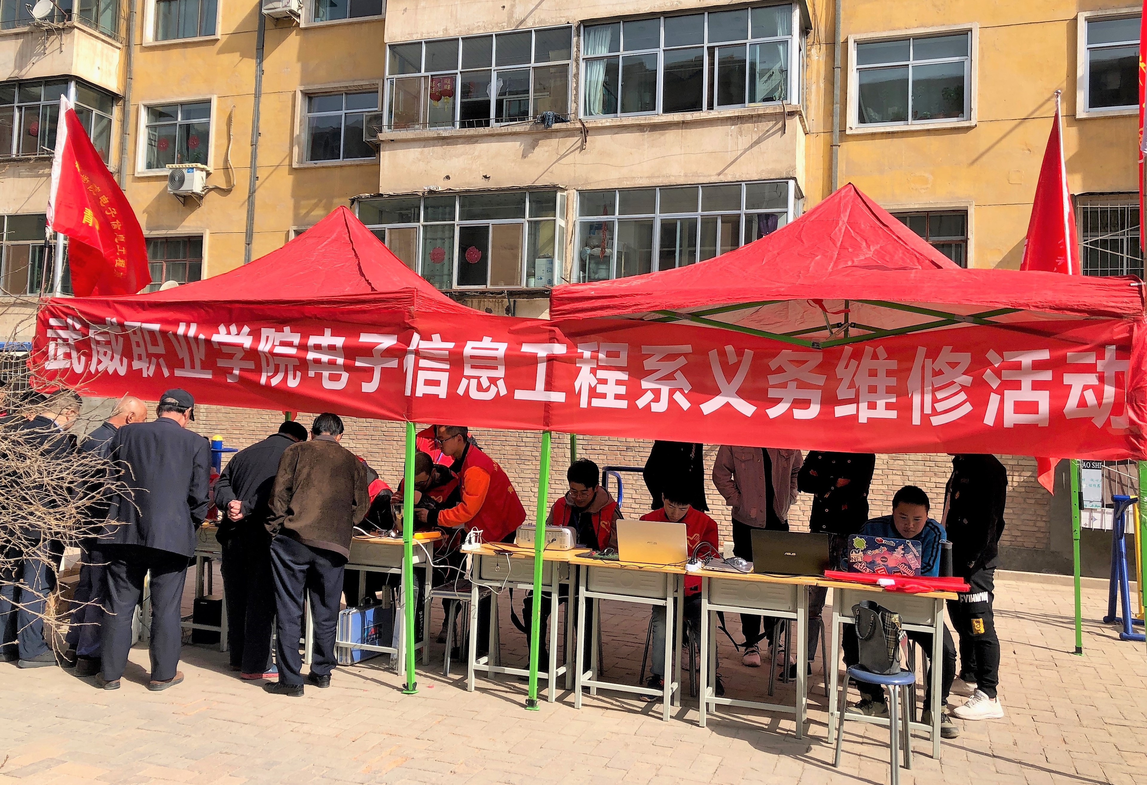 3月23日上午,我系小牛頓電子協(xié)會和計算機協(xié)會的志愿者們,來到泰安小區(qū)開展了以“發(fā)揚雷鋒精神,科技服務進社區(qū)”為主題的家電、電腦義務維修活動。志愿者們對小區(qū)居民送來的電水壺、電飯煲、微波爐、影碟機等家電進行了維修,受到了小區(qū)居民的歡迎。志愿者們還不辭辛苦,上門對有故障的電腦進行重裝系統(tǒng)、更新驅(qū)動等服務,師生們認真負責、一絲不茍的精神得到了居民們的贊許。