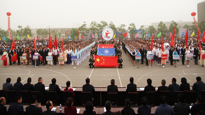 趙明致開幕詞,他代表學(xué)院黨委對(duì)運(yùn)動(dòng)會(huì)的召開表示熱烈的祝賀!向參加本次運(yùn)動(dòng)會(huì)的運(yùn)動(dòng)員、裁判員表示崇高的敬意!向?yàn)榛I備運(yùn)動(dòng)會(huì)而付出辛勤勞動(dòng)的全體工作人員表示衷心的感謝。2018年以來,學(xué)院迎難而上、開拓創(chuàng)新,深化產(chǎn)教融合、校企合作,專業(yè)建設(shè)、師資隊(duì)伍建設(shè)、學(xué)生技能大賽、專升本考試輔導(dǎo)、實(shí)驗(yàn)實(shí)訓(xùn)條件建設(shè)、國(guó)際交流合作力度等內(nèi)涵建設(shè)全面推進(jìn),不斷提升辦學(xué)綜合實(shí)力和水平,各項(xiàng)事業(yè)取得新突破、呈現(xiàn)新氣象。這些成績(jī)的取得,是全院上下團(tuán)結(jié)拼搏、務(wù)實(shí)工作、傾情奉獻(xiàn)的結(jié)果?!靶闹窃从跉v練,生命在于運(yùn)動(dòng)”。少年強(qiáng)、青年強(qiáng)則中國(guó)強(qiáng)。作為新時(shí)代社會(huì)主義建設(shè)者和接班人,更應(yīng)該具備合格的素質(zhì)、強(qiáng)健的體魄,努力為建設(shè)富強(qiáng)民主文明和諧美麗的社會(huì)主義現(xiàn)代化強(qiáng)國(guó)貢獻(xiàn)力量。最后,希望全體運(yùn)動(dòng)員在競(jìng)賽過程中發(fā)揚(yáng)拼搏精神,展現(xiàn)青春活力,充分調(diào)動(dòng)和發(fā)揮潛力,賽出水平、賽出風(fēng)格,以最好的成績(jī)和精神面貌贏得榮譽(yù)。希望全體工作人員發(fā)揚(yáng)奉獻(xiàn)精神,提高服務(wù)意識(shí),為本次運(yùn)動(dòng)會(huì)圓滿成功提供有力的后勤保障。希望參加運(yùn)動(dòng)會(huì)的學(xué)生文明觀看,服從管理,為運(yùn)動(dòng)員加油、喝彩,努力在體育的欣賞中獲得享受與快樂。也希望通過運(yùn)動(dòng)會(huì)在全院形成熱愛體育運(yùn)動(dòng)、弘揚(yáng)體育精神的濃厚氛圍,將體育鍛煉作為每一位師生的良好習(xí)慣,并將體育運(yùn)動(dòng)中所蘊(yùn)涵的不斷進(jìn)取、勇攀高峰的拼搏精神轉(zhuǎn)化為推動(dòng)學(xué)院各項(xiàng)事業(yè)發(fā)展的強(qiáng)大動(dòng)力,為建設(shè)“西部示范、全國(guó)一流、世界有影響”的職業(yè)教育名校而不懈奮斗。