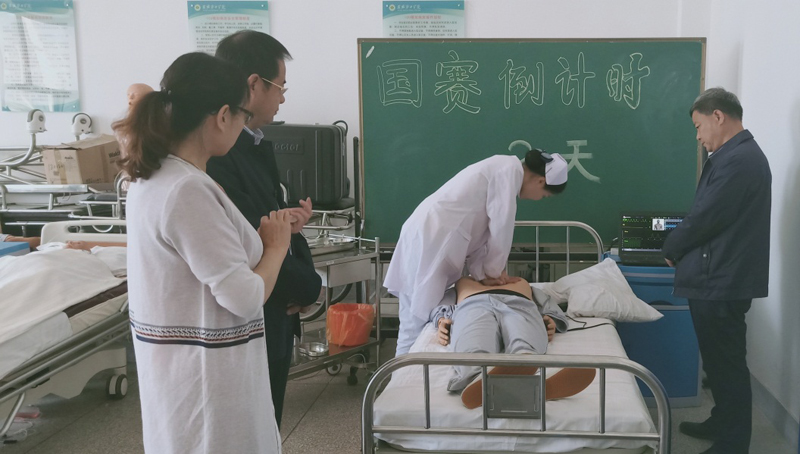 院領(lǐng)導(dǎo)高度重視此次比賽,全力支持大賽工作,時刻關(guān)注賽前訓(xùn)練情況。學(xué)院黨委書記趙明、副院長翟存祥、教務(wù)處處長仲生仁多次到訓(xùn)練現(xiàn)場觀看選手操作,并提出指導(dǎo)性的意見和建議。趙書記充分肯定了老師們的辛勤付出,要求輔導(dǎo)教師在訓(xùn)練中一定要堅持高標(biāo)準(zhǔn)、嚴(yán)要求;鼓勵選手發(fā)揮潛能,賽出水平,實現(xiàn)新的突破。護(hù)理系成立了以黨總支書記張建輝、系主任韓曉萍牽頭,由專業(yè)教師組成大賽輔導(dǎo)小組,認(rèn)真解讀競賽規(guī)程,周密安排訓(xùn)練計劃,強(qiáng)化理論知識,細(xì)化操作項目,力爭在此次大賽中取得好成績。
