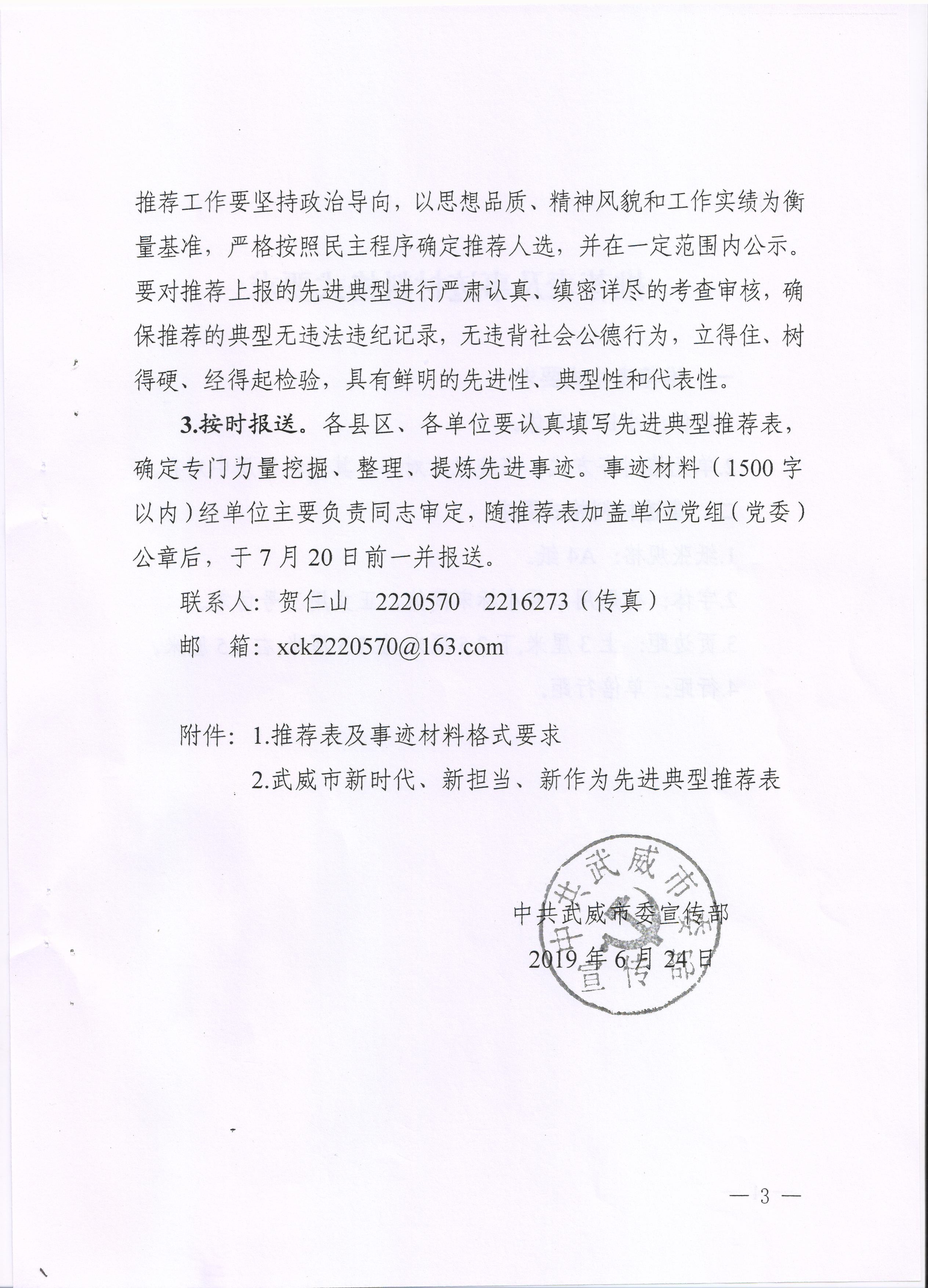 附件:《中共武威市委宣傳部關(guān)于推薦新時(shí)代、新?lián)?dāng)、新作為先進(jìn)典型的通知》