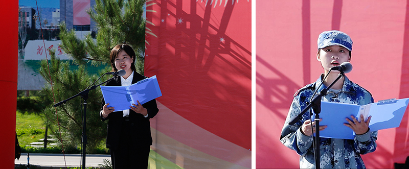 伴隨著莊嚴(yán)肅穆的國(guó)歌,大會(huì)正式拉開(kāi)帷幕。在激昂的音樂(lè)聲下,國(guó)旗護(hù)衛(wèi)隊(duì)向我們走來(lái),他們目光堅(jiān)毅、身姿矯健、步伐整齊有力,彰顯了須眉巾幗、志在四方的豪情壯志?!安煌跣?、牢記使命”,“尚學(xué)崇技、求真創(chuàng)新”,“立德樹(shù)人、服務(wù)發(fā)展、促進(jìn)就業(yè)、適應(yīng)需要”鏗鏘有力的口號(hào)生動(dòng)的展現(xiàn)了新時(shí)代大學(xué)生的青春風(fēng)貌。