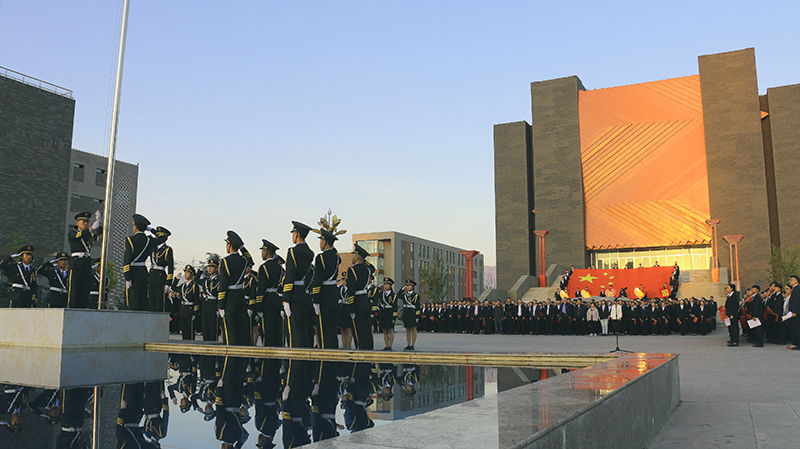 首先,舉行升國旗儀式。英姿颯爽的國旗護(hù)衛(wèi)隊(duì)踏著矯健的步伐護(hù)送國旗抵達(dá)升旗臺(tái),鮮艷的五星紅旗在雄壯的國歌聲中冉冉升起,全場師生齊唱中華人民共和國國歌,飄揚(yáng)的國旗、嘹亮的國歌,激蕩起每個(gè)人強(qiáng)烈的愛國熱情。升旗儀式結(jié)束后,全體師生揮動(dòng)手中的五星紅旗齊唱《歌唱祖國》,用歌聲共同祝福偉大的祖國繁榮富強(qiáng)。院團(tuán)委馬琪老師帶領(lǐng)全體團(tuán)員面向鮮紅的團(tuán)旗重溫入團(tuán)誓詞,激發(fā)共青團(tuán)員的光榮感和使命感。