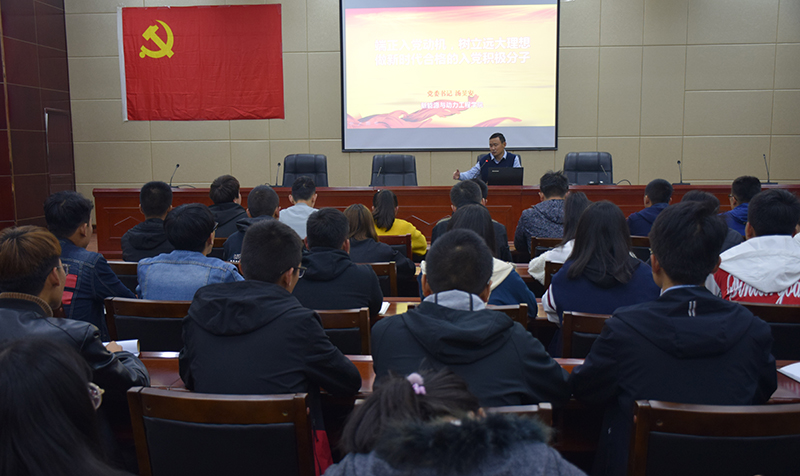 開班典禮結束后,羅小勇同志以“學習貫徹新黨章,做習近平新時代中國特色社會在主義思想的踐行者”為題講授了開班的第一課;馬天琳以“中國共產黨的指導思想”為題講授了第二課。當晚,學院黨委書記湯旻安同志以“端正入黨動機,樹立遠大理想,做新時代合格的入黨積極分子”為題講授了第三課。
