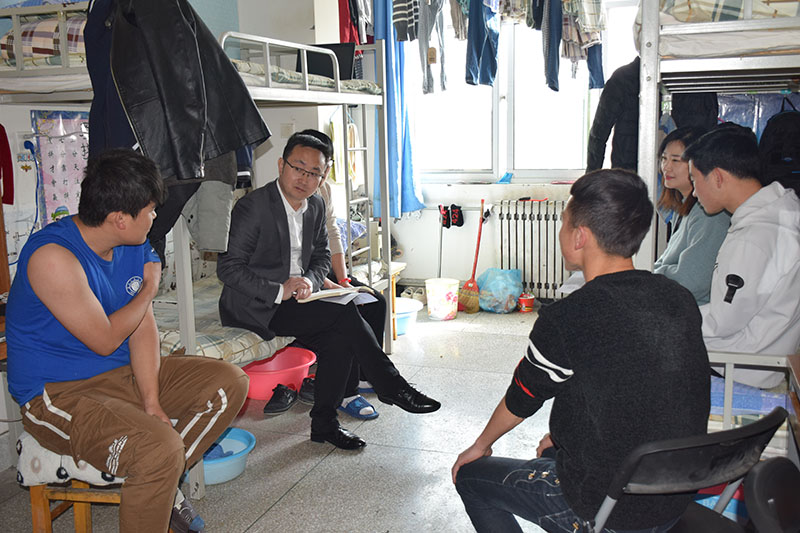 活動(dòng)中,黨支部書記任陶宣讀《新能源與動(dòng)力工程學(xué)院辦公室黨支部教師黨員聯(lián)系學(xué)生宿舍制度》,并對(duì)具體工作作出安排。他強(qiáng)調(diào)深入學(xué)生中要努力做到“六心”:了解學(xué)生要細(xì)心,思想教育要耐心,心理疏導(dǎo)要貼心,成才引導(dǎo)要熱心,平時(shí)相處要交心,幫困解難要有愛心。緊接著,全體黨員進(jìn)入3#公寓和7#公寓,開展三幫(幫思想、幫學(xué)習(xí)、幫生活)和兩導(dǎo)(對(duì)學(xué)生進(jìn)行長(zhǎng)才引導(dǎo)和心理疏導(dǎo))工作。黨員們分別到所聯(lián)系的宿舍,與學(xué)生展開親切的交流、座談,詳細(xì)詢問他們?cè)谏詈蛯W(xué)習(xí)中存在的問題,并對(duì)同學(xué)們?cè)诮逃虒W(xué)和學(xué)生管理方面提出的意見建議做了詳細(xì)的記錄。