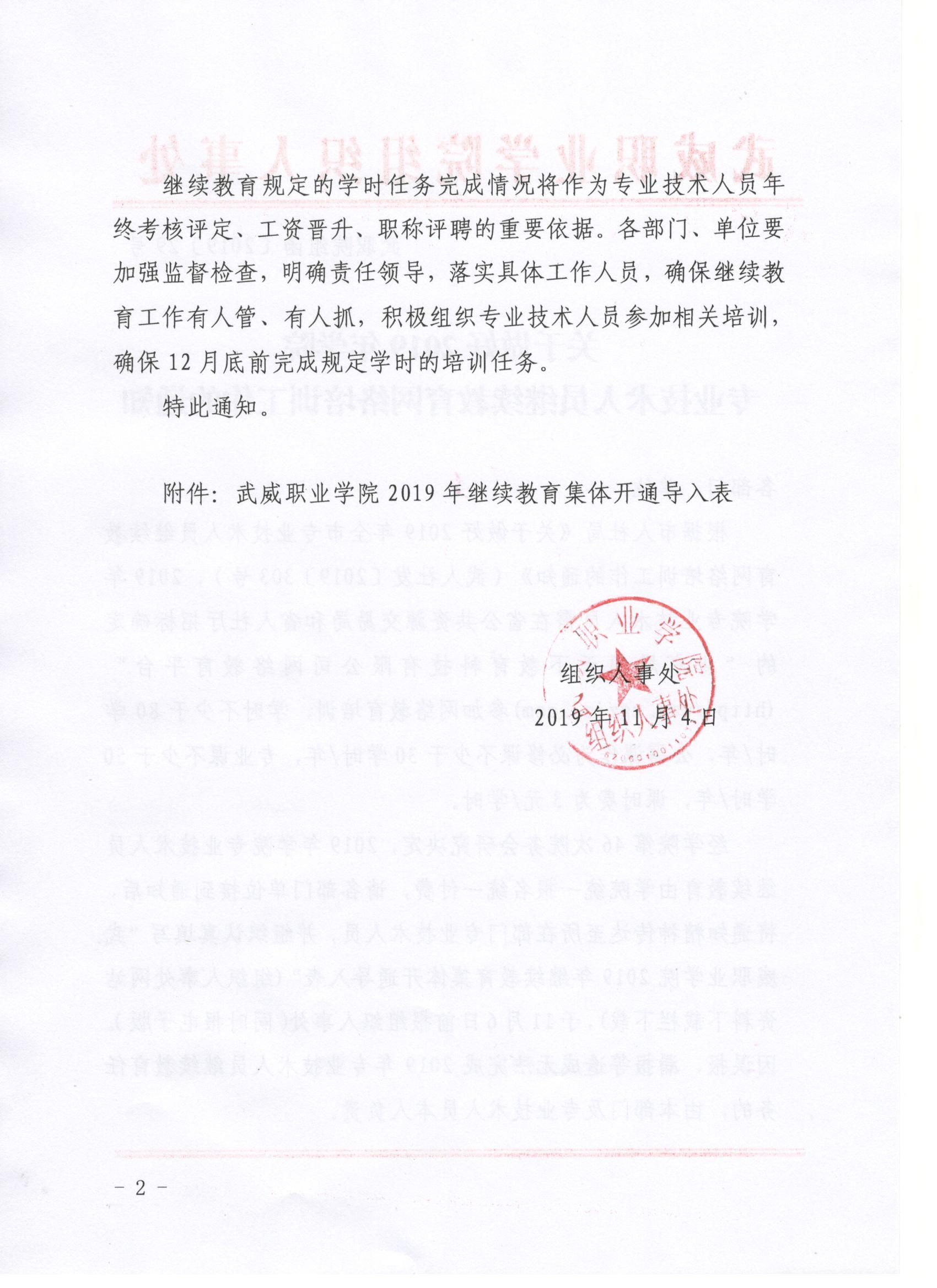 關(guān)于做好2019年學(xué)院專業(yè)技術(shù)人員繼續(xù)教育網(wǎng)絡(luò)培訓(xùn)工作的通知