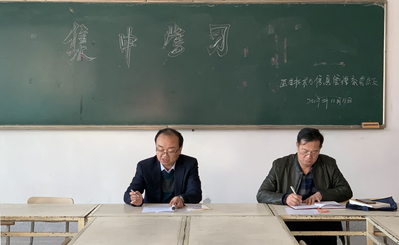 11月11日下午,醫(yī)學(xué)技術(shù)與信息管理系組織全體黨員在明遠(yuǎn)樓416會(huì)議室集中學(xué)習(xí)黨的十九屆四中全會(huì)精神。邀請(qǐng)聯(lián)系黨總支的黨委委員、副院長張開禮參加學(xué)習(xí)并指導(dǎo),系黨總支書記黃文源主持會(huì)議。