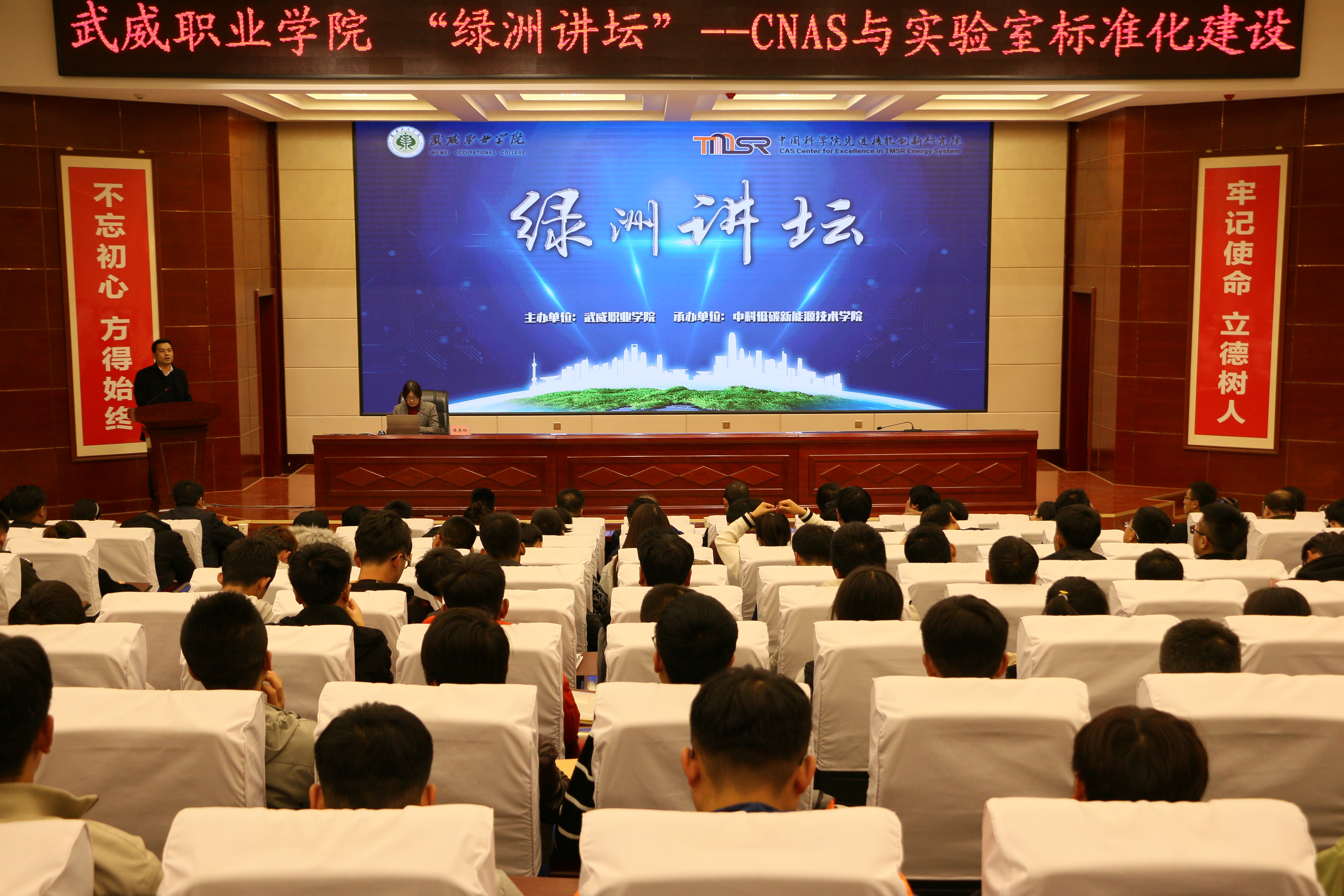 11月22日,武威職業(yè)學院“綠洲講壇”第30期在學院菁英廳舉行,本期活動邀請到中科院上海應用物理研究所研究員、全國專業(yè)標準化技術委員會委員陸燕玲博士作主題為“CNAS與實驗室標準化建設”的報告。學院各系實驗室管理員、實驗課任課教師及中科低碳新能源技術學院師生代表共220人聆聽了報告。本期講壇由能源工程系副主任黃述杰主持。