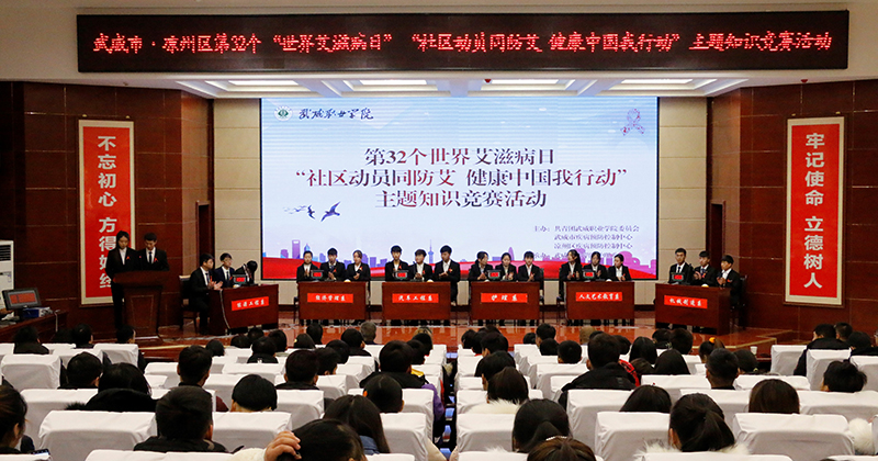 為持續(xù)深入推進(jìn)大學(xué)生艾滋病預(yù)防教育工作,迎接第32個世界艾滋病日的到來, 12月1日晚,學(xué)院開展了艾滋病知識競賽活動,學(xué)院副院長王永緒、王守云,市疾控中心領(lǐng)導(dǎo)參加活動。此次活動由武威職業(yè)學(xué)院與武威市疾控中心聯(lián)合主辦,護(hù)理系承辦,活動的主題為“社區(qū)動員同防艾 .健康中國我行動”。學(xué)院團(tuán)委及部分系老師,各系學(xué)生代表觀看了比賽。