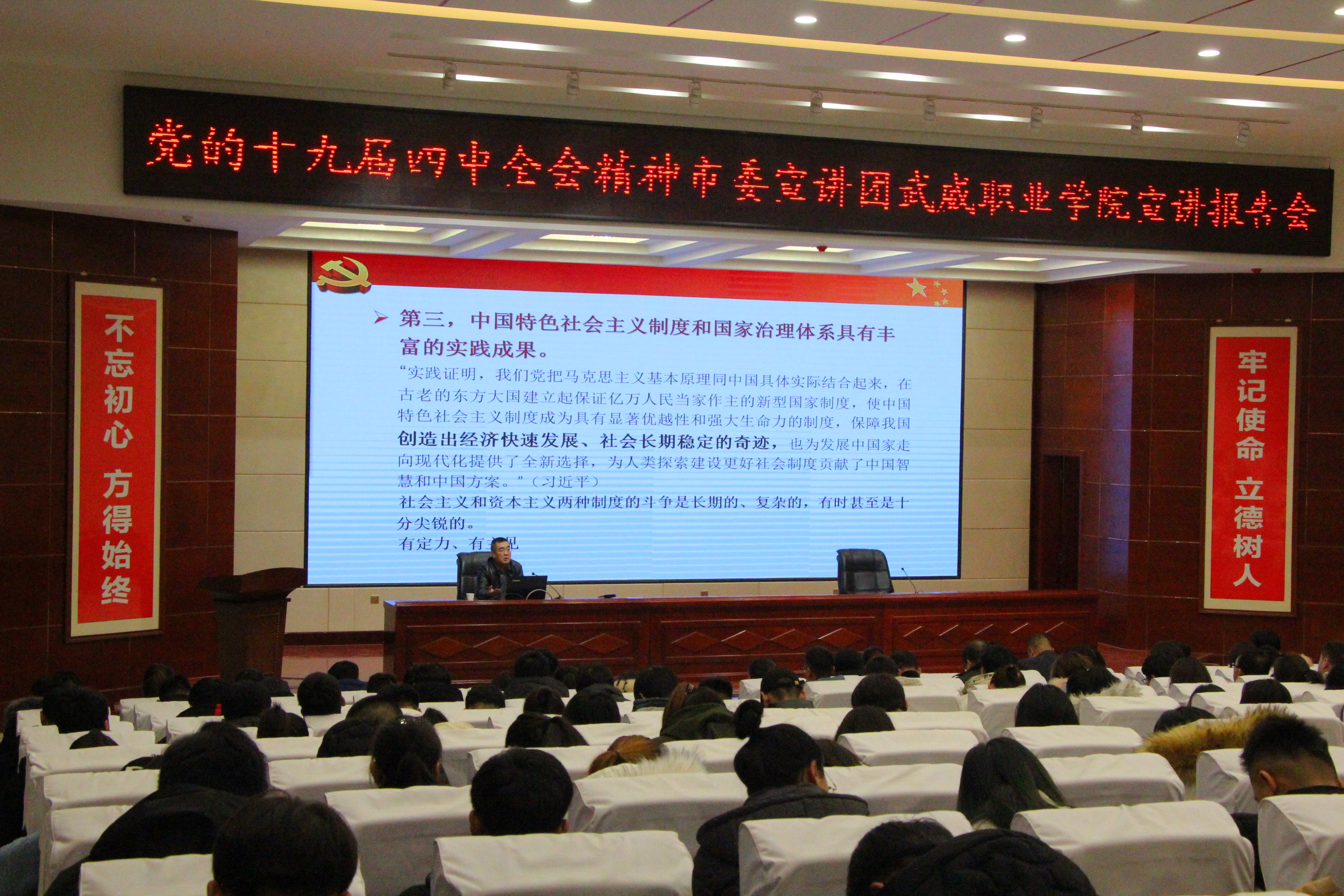 學(xué)院舉行黨的十九屆四中全會精神市委宣講團武威職業(yè)學(xué)院宣講報告會