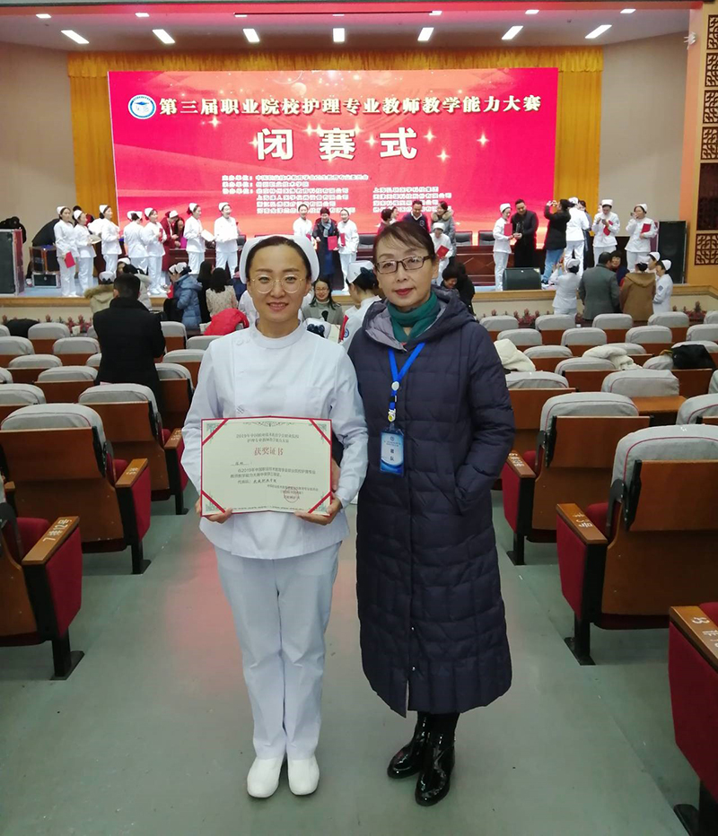 第三屆職業(yè)院校護(hù)理專業(yè)教師教學(xué)能力大賽于2019年11月28-12月2日在湖南岳陽開賽,來自全國29個省、市、自治區(qū)103所職業(yè)院校的201名選手參加大賽。我院護(hù)理系主任韓曉萍帶隊(duì),陳琳老師參加此次比賽。經(jīng)過三天多輪激烈比拼,陳琳喜獲三等獎。