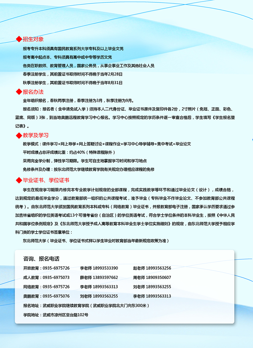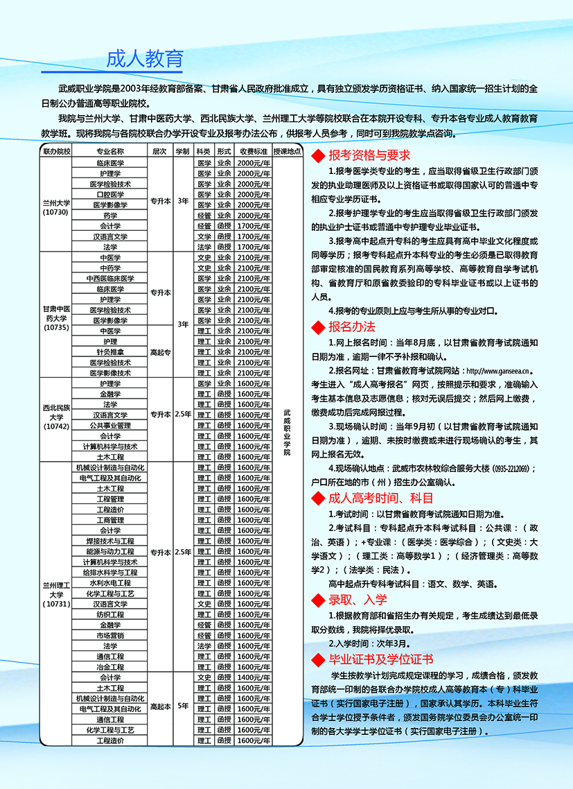 武威職業(yè)學(xué)院繼續(xù)教育學(xué)院2020年招生簡(jiǎn)章