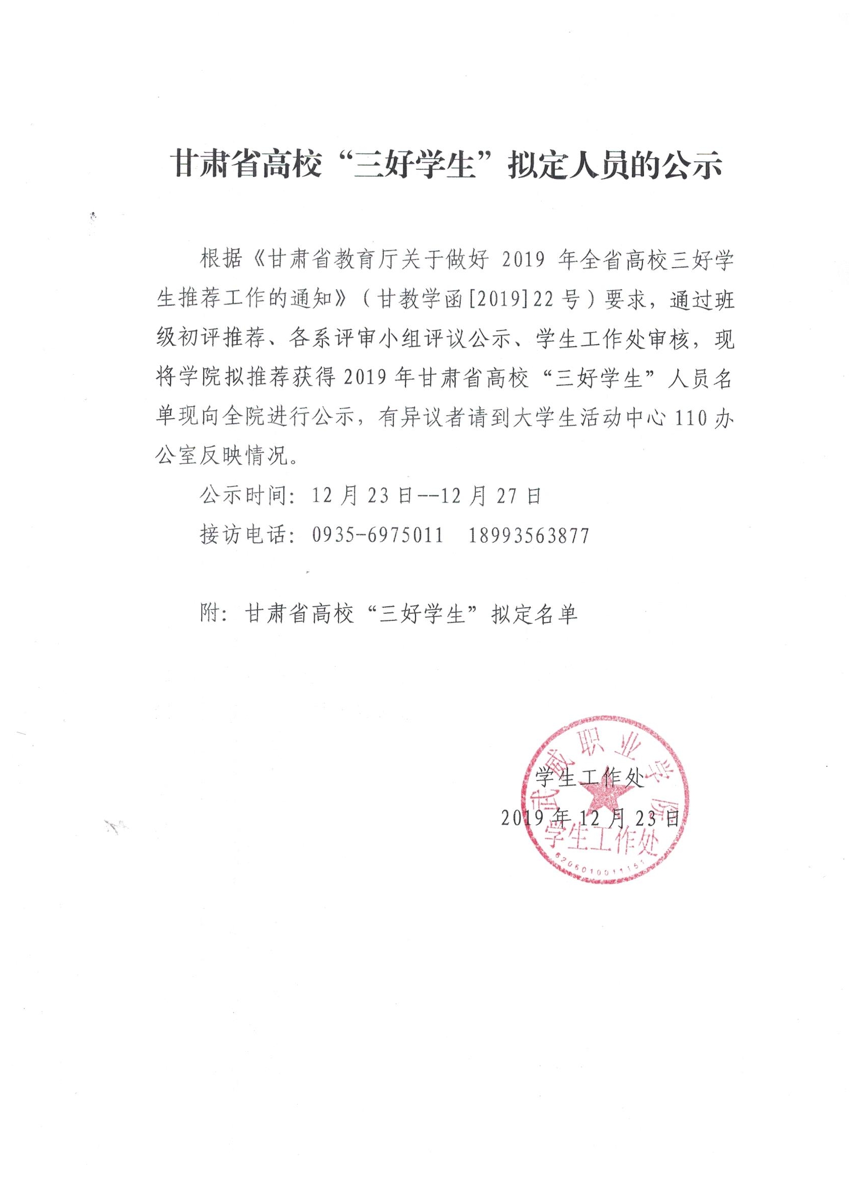 甘肅省高?!叭脤W生”擬定人員的公示