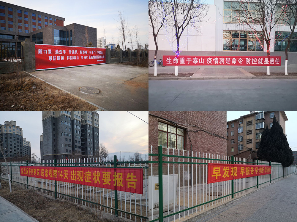 學院面向師生和社會人員,加強疫情防控內(nèi)外宣傳。在校園圍墻醒目位置設置內(nèi)容為:“戴口罩、勤洗手、常通風、拒野味、不串門、不聚會”,“聯(lián)防聯(lián)控、群防群治、堅決打贏疫情防控阻擊戰(zhàn)”等宣傳標語;在校園內(nèi)、家屬區(qū)等地顯著位置設置:“生命重于泰山、疫情就是命令、防控就是責任”,“重科學、聽官宣、不信謠、不傳謠”,“疫點返鄉(xiāng)回到家、居家觀察14天、出現(xiàn)癥狀要報告”,“早發(fā)現(xiàn)、早報告、早診斷、早治療”等宣傳標語、橫幅。通過線上線下、校內(nèi)校外全方位教育、宣傳、號召、引導,營造了師生和社會人員高度重視、科學嚴謹、從我做起、同舟共濟嚴格防控疫情的濃厚氛圍和戰(zhàn)勝疫情的堅定信心,為早日打贏疫情防控戰(zhàn)凝聚了共識、匯聚了強大的精神力量。