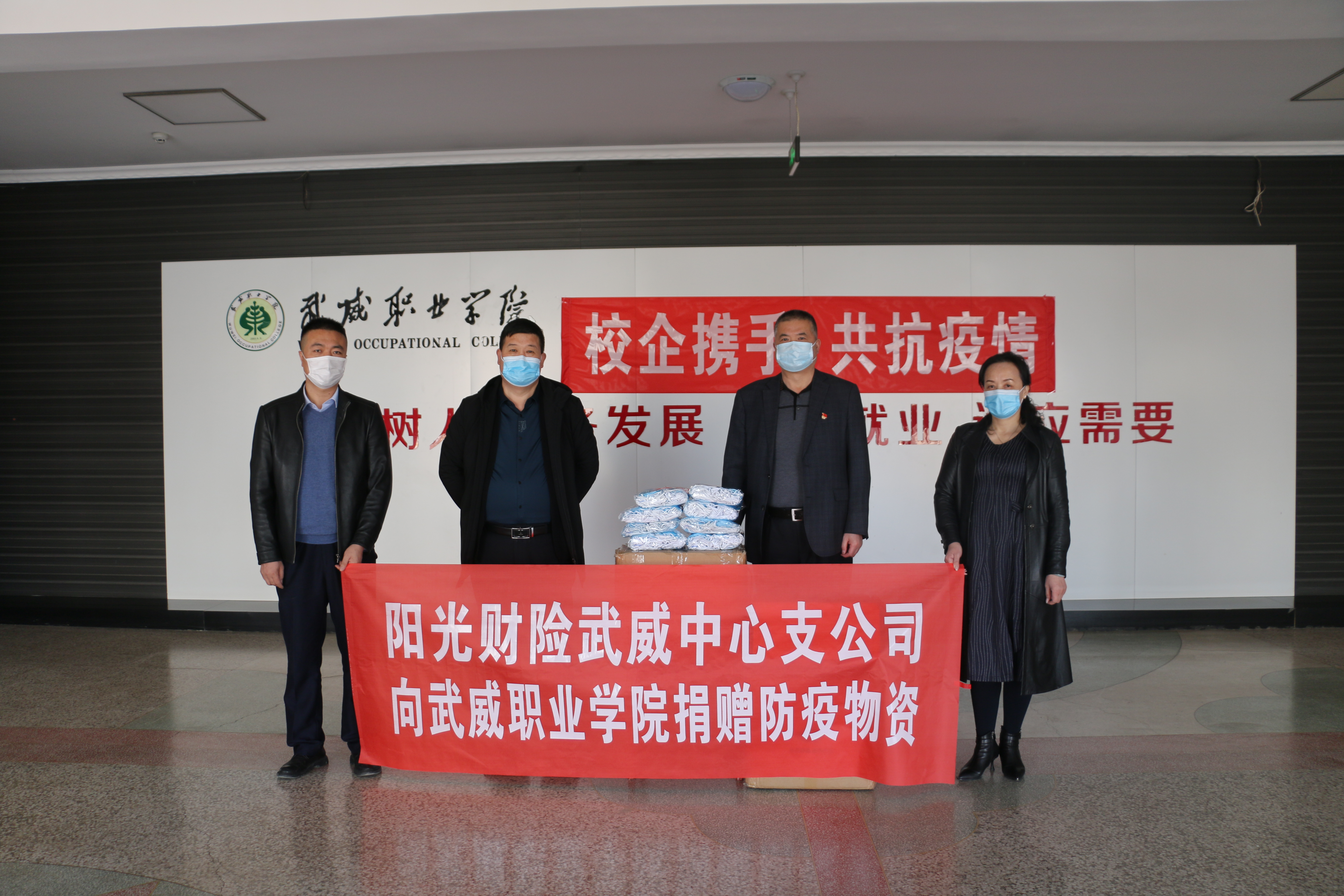 陽光財產(chǎn)保險股份有限公司武威中心支公司向學院捐贈新冠肺炎疫情物資,捐贈一次性醫(yī)用口罩5000個。