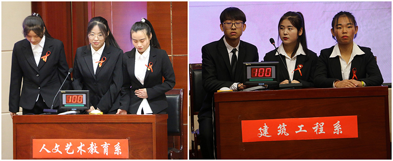 本次活動面向全院開展,經(jīng)過前期初賽,最終有6支代表隊(duì)進(jìn)入到此次決賽中。決賽分為個人必答題、小組搶答題、風(fēng)險題三個環(huán)節(jié),內(nèi)容涵蓋艾滋病預(yù)防、檢測、治療等多個方面。競賽中,各隊(duì)選手沉著冷靜、對答如流,配合默契,臺下同學(xué)們秩序井然,展示了我院學(xué)生良好的精神風(fēng)貌。經(jīng)過激烈的角逐,護(hù)理系代表隊(duì)獲得此次競賽活動的一等獎,經(jīng)濟(jì)管理系和機(jī)械制造系獲得二等獎,人文藝術(shù)教育系、能源工程系和汽車制造系獲得三等獎。活動結(jié)束后,各位領(lǐng)導(dǎo)和參賽選手進(jìn)行合影留念。