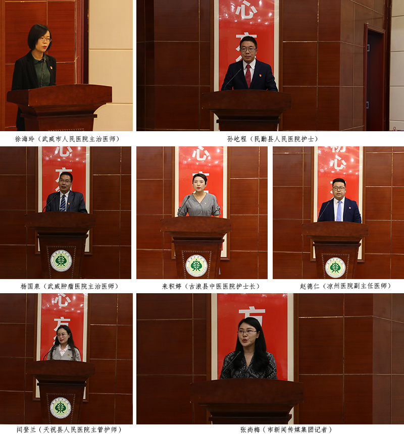 宣講報(bào)告團(tuán)成員由6位援鄂優(yōu)秀隊(duì)員代表和市新聞傳媒集團(tuán)的1位記者組成。宣講會(huì)上,武威市人民醫(yī)院主治醫(yī)師徐海玲、民勤縣人民醫(yī)院護(hù)士孫屹程、武威腫瘤醫(yī)院主治醫(yī)師楊國(guó)泉、古浪縣中醫(yī)醫(yī)院護(hù)士長(zhǎng)來(lái)積婷、涼州醫(yī)院副主任醫(yī)師趙德仁、天??h人民醫(yī)院主管護(hù)師閆登蘭,市新聞傳媒集團(tuán)記者張尚梅,用自己的親身經(jīng)歷和樸實(shí)生動(dòng)的語(yǔ)言,從主動(dòng)請(qǐng)戰(zhàn)、逆行出征、克服困難、參與救治、關(guān)愛患者、勝利歸來(lái)等多個(gè)方面,滿懷深情地講述了他們?cè)谥г逼陂g的難忘瞬間與暖心經(jīng)歷。他們用實(shí)際行動(dòng)譜寫了一曲感天動(dòng)地的英雄贊歌,生動(dòng)詮釋了新時(shí)代武威精神,是武威人民的優(yōu)秀兒女,是當(dāng)之無(wú)愧的“白衣戰(zhàn)士”、“最美逆行者”和“新時(shí)代最可愛的人”。會(huì)場(chǎng)不時(shí)響起如雷的掌聲。武威援鄂醫(yī)療隊(duì)全體成員以強(qiáng)烈的使命感和責(zé)任感,堅(jiān)持奮戰(zhàn)在抗擊疫情的最前沿,展現(xiàn)了崇高的使命擔(dān)當(dāng),樹立了新時(shí)代的典型榜樣。