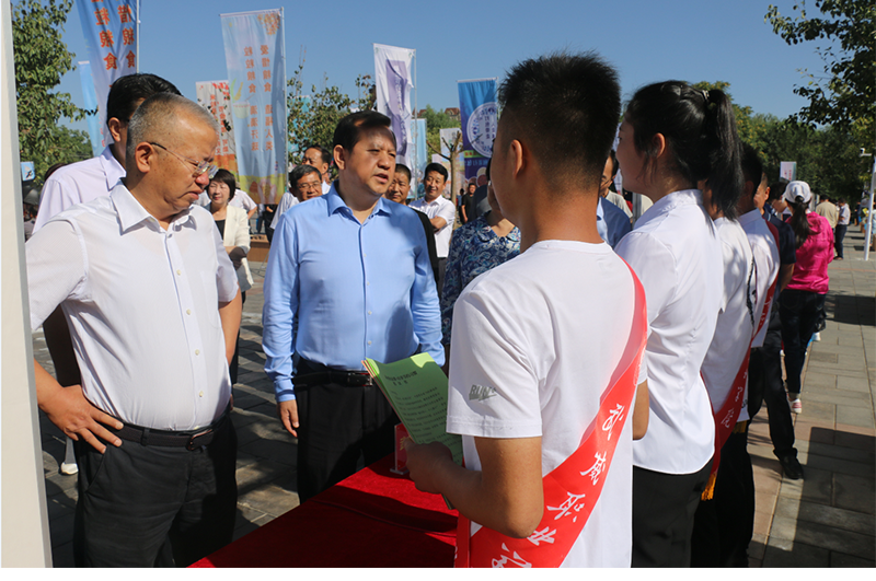 活動現(xiàn)場,學(xué)院制作展示了愛糧節(jié)糧主題展板,組織志愿者向市民發(fā)放倡議書1000余份。市委書記柳鵬一行來到學(xué)院展區(qū)參觀指導(dǎo)工作,柳鵬詳細(xì)詢問了學(xué)生食堂日常浪費情況和學(xué)院文明就餐教育工作,并對學(xué)院教育引導(dǎo)工作予以肯定,勉勵同學(xué)們要帶頭發(fā)揚優(yōu)良傳統(tǒng),珍惜每一粒糧食,杜絕浪費,當(dāng)好勤儉節(jié)約的排頭兵。