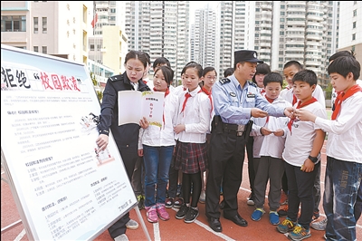 ⑨ 5月18日,民警在安徽省合肥市蜀山區(qū)華府駿苑小學開展拒絕“校園欺凌”教育活動。