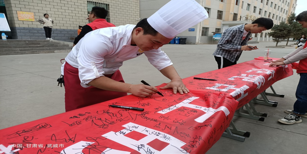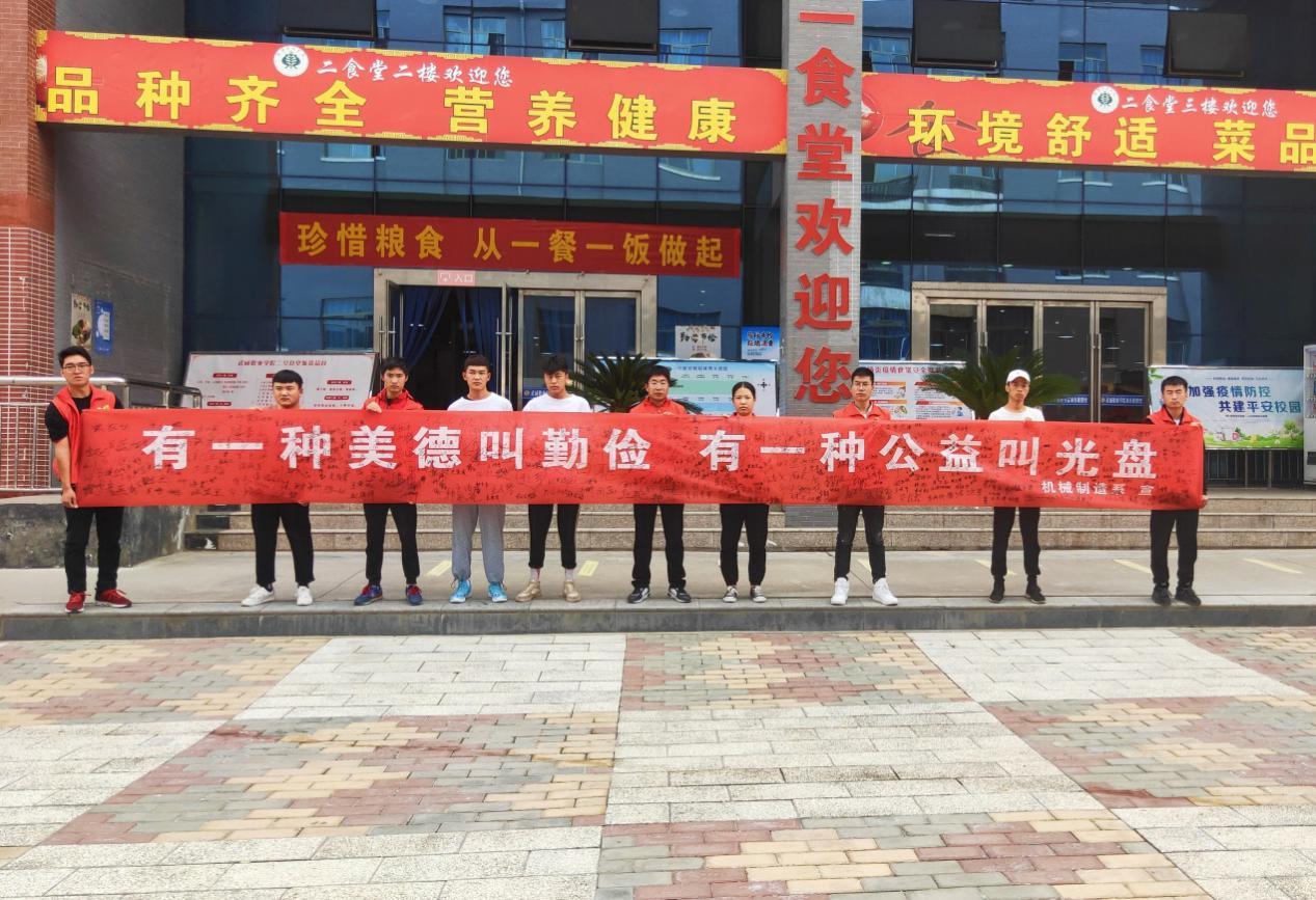 為了大力加強廣大師生節(jié)約糧食和光盤行動的意識,培養(yǎng)文明就餐習慣,2020年9月16日武威職業(yè)學院機械制造系在學校一、二號兩個食堂門口舉行了以“節(jié)約糧食儉以養(yǎng)德”為主題的簽名活動。