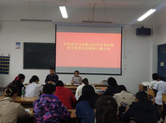 會(huì)上,護(hù)理系主任韓曉萍領(lǐng)學(xué)了《習(xí)近平總書記教育重要論述講義》,重溫了總書記教師節(jié)重要寄語及精神。她指出,全體教職員工要牢記習(xí)近平總書記“不忘立德樹人初心,牢記為黨育人、為國育才使命”的責(zé)任擔(dān)當(dāng),積極探索,在教書育人的崗位上不斷作出新的重大貢獻(xiàn)。她要求,每位教職員工撰寫一篇學(xué)習(xí)心得體會(huì),提高認(rèn)識(shí),牢記使命,立足實(shí)際,為黨和國家培育社會(huì)主義建設(shè)者和接班人。