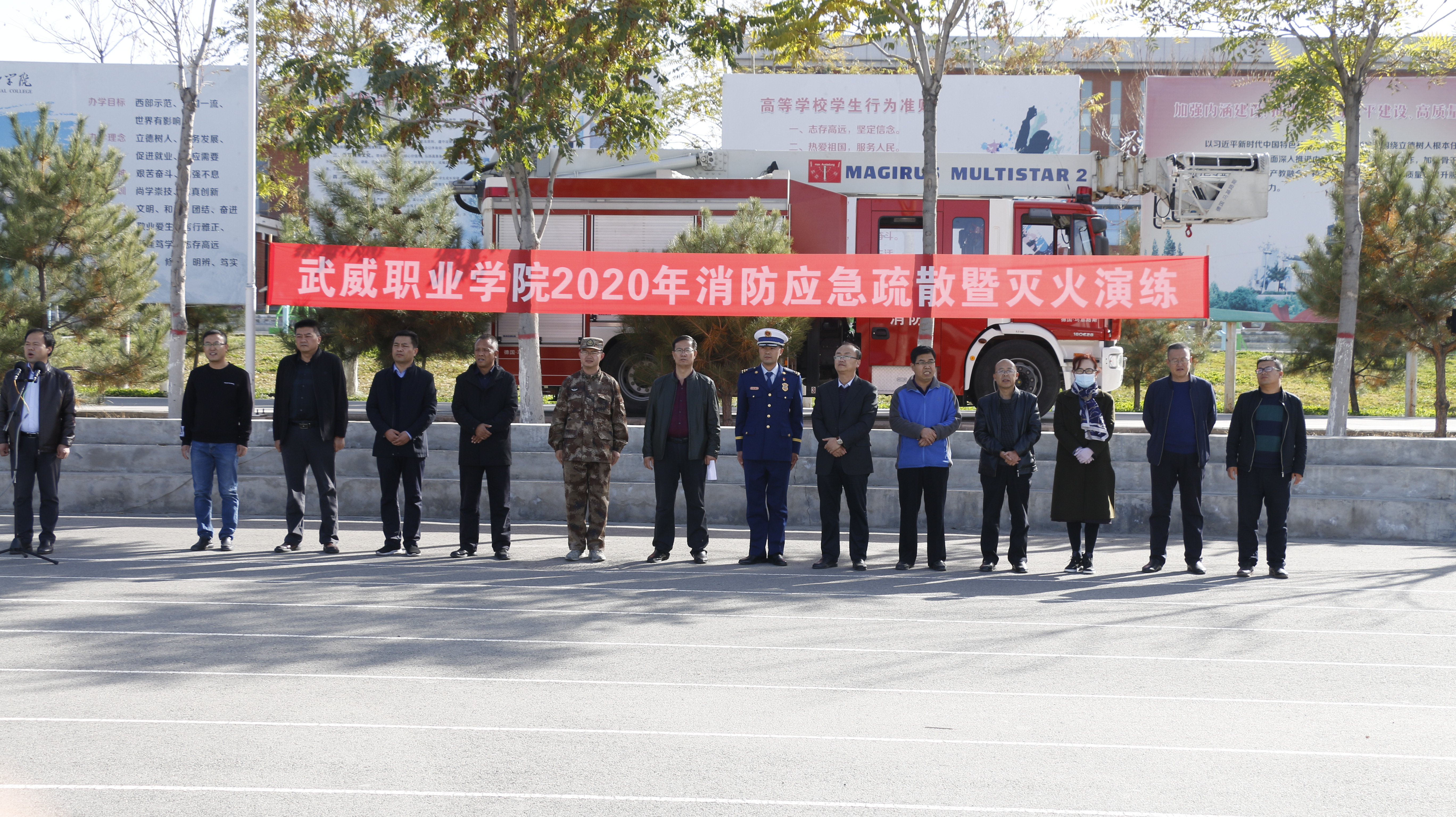 10月21日下午,學(xué)院聯(lián)合涼州區(qū)消防救援中隊(duì)舉行了2020年消防應(yīng)急疏散和滅火演練活動(dòng)。學(xué)院副院長張開禮、涼州區(qū)消防救援中隊(duì)指導(dǎo)員李躍興出席活動(dòng),保衛(wèi)處、學(xué)生工作處、各教學(xué)院系負(fù)責(zé)同志現(xiàn)場(chǎng)觀摩演練,約4300多名2020級(jí)新生參加了演練?。
