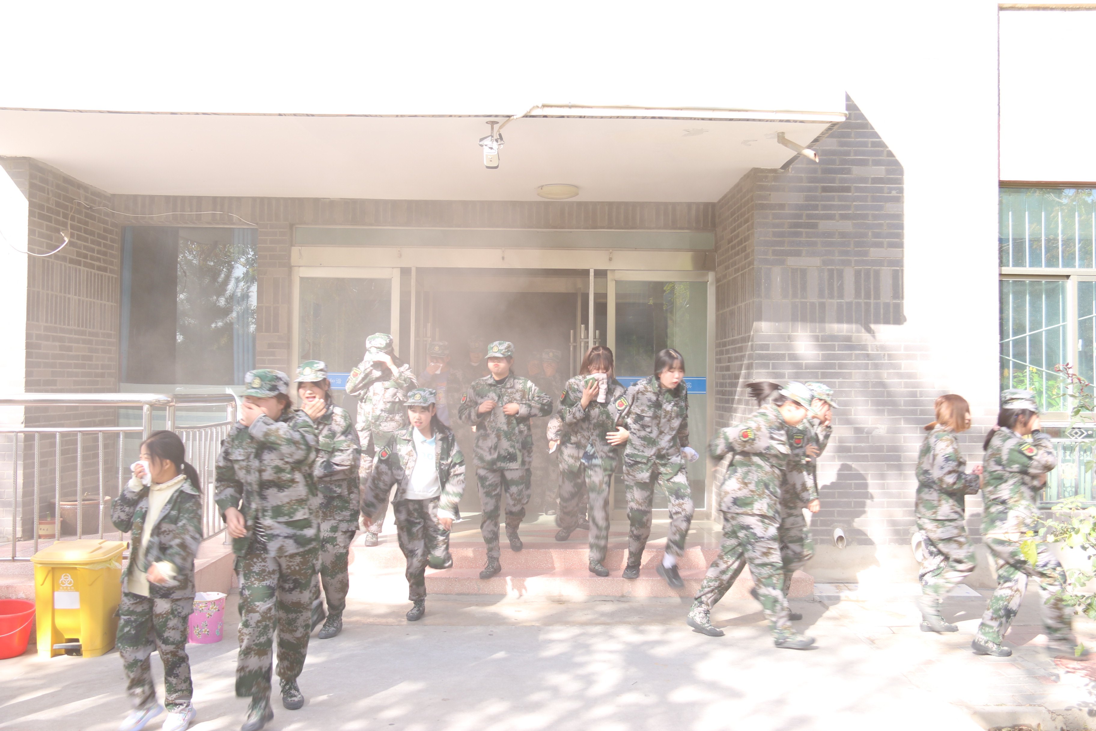 14時(shí)40分,疏散演練正式開始。隨著火災(zāi)警報(bào)響起,學(xué)生公寓樓冒出滾滾濃煙,公寓管理人員迅速組織學(xué)生有序疏散。在管理人員的引導(dǎo)下,同學(xué)們按照動(dòng)作要領(lǐng),用濕毛巾捂住口鼻,俯身彎腰按照安全出口指示牌快速、有序從疏散通道撤離到安全地帶,整個(gè)過程緊張有序、實(shí)用性強(qiáng),收到了預(yù)期效果。