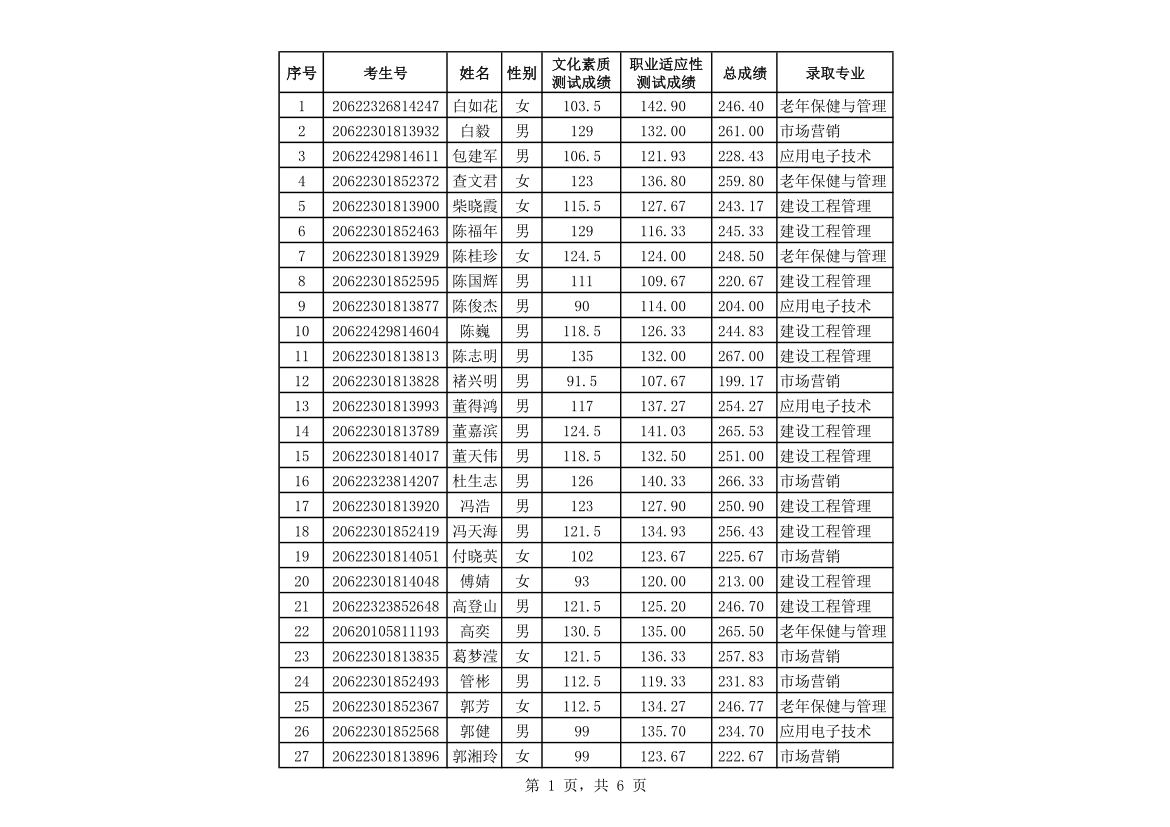 武威職業(yè)學(xué)院2020年擴(kuò)招錄取新生名單