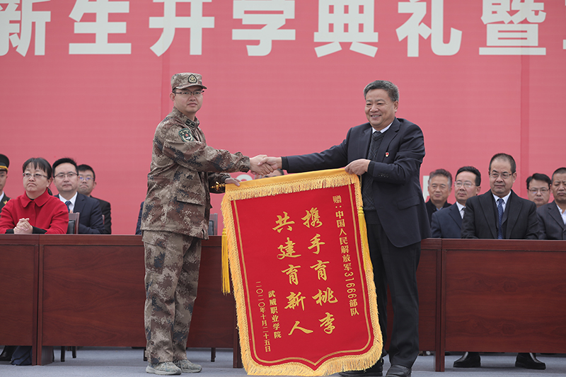 黨委書記、院長趙明向承訓部隊贈送錦旗