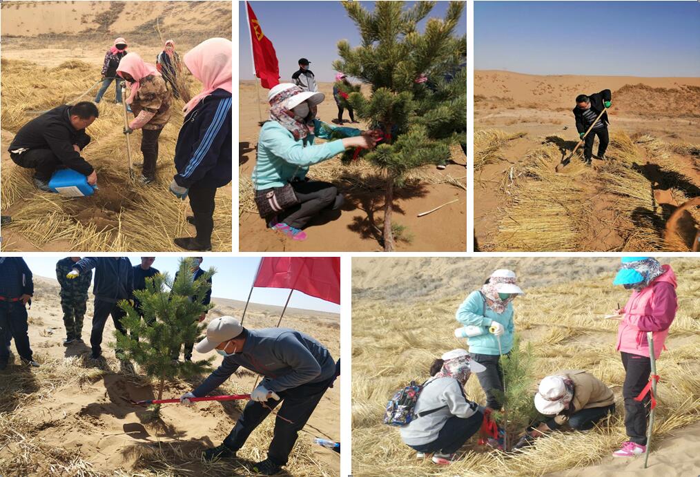 由我院與中科武威新能源研究所合作的淀粉基超級(jí)吸水材料在沙漠植保工程示范試驗(yàn)項(xiàng)目組成員自4月8日起已陸續(xù)赴武威園區(qū)、民勤縣青土湖,涼州區(qū)長城鎮(zhèn)、古浪八步沙等地推廣應(yīng)用工作,陸續(xù)實(shí)施壓沙、沙生苗木種植、植被樣點(diǎn)監(jiān)測(cè)等,截至目前累計(jì)完成壓沙任務(wù)300畝,苗木種植任務(wù)220畝。