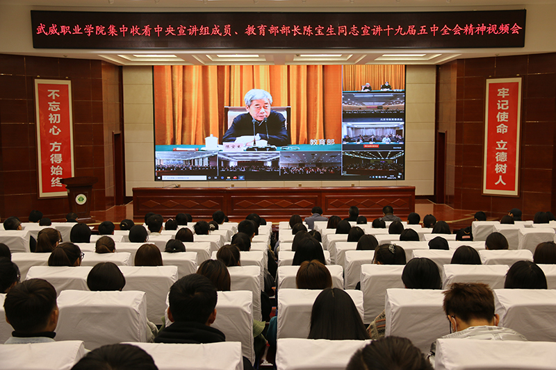 11月12日下午,學院在大學生活動中心菁英廳組織學習中央宣講團成員、教育部部長、教育部黨組書記陳寶生在教育部宣講十九屆五中全會精神視頻。黨員干部和師生代表共220人參加學習。