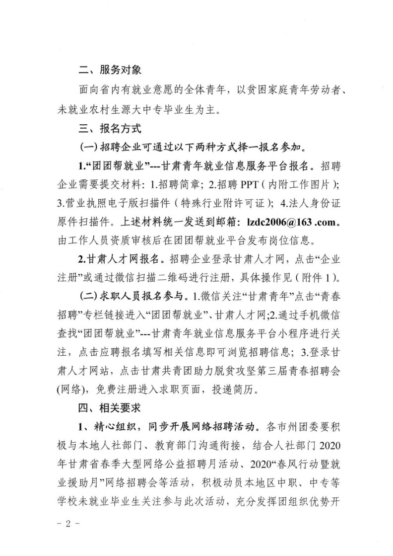關(guān)于組織開展甘肅共青團助力脫貧攻堅第三屆青春招聘會(網(wǎng)絡(luò))活動的通知