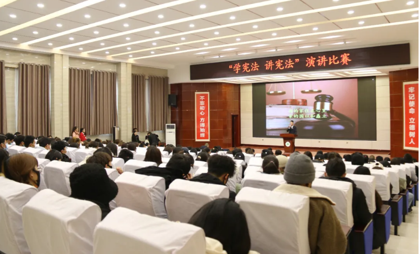 12月4日下午,學(xué)院“學(xué)憲法 講憲法”演講比賽于菁英廳舉行。學(xué)院黨委委員、副院長(zhǎng)何毅出席活動(dòng)。擔(dān)任此次比賽的評(píng)委是:宣傳統(tǒng)戰(zhàn)部部長(zhǎng)魏全民,雙創(chuàng)中心副主任顏魯薪,學(xué)生工作處姚斌,省級(jí)普通話測(cè)試員、宣傳統(tǒng)戰(zhàn)部趙炯星,質(zhì)量管理辦公室馮文娟,院團(tuán)委王冠群。各系輔導(dǎo)員、民法典伴我行主題手抄報(bào)比賽獲獎(jiǎng)的25名同學(xué)及師生代表共220人參加活動(dòng)。