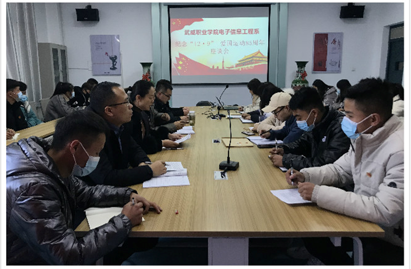 12月9日,各系進行了紀念“12.9”愛國運動座談會,通過師生座談共議前仆后繼、不屈不撓的愛國主義精神,充分認識“12.9”愛國運動的歷史意義和深刻內(nèi)涵。