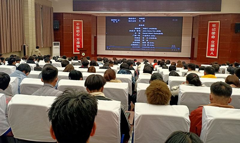 12月9日晚,學生代表共220余人在菁英廳觀看了愛國主義教育影片《東京審判》,共同重溫紅色歷史,緬懷革命先輩,感悟革命精神。